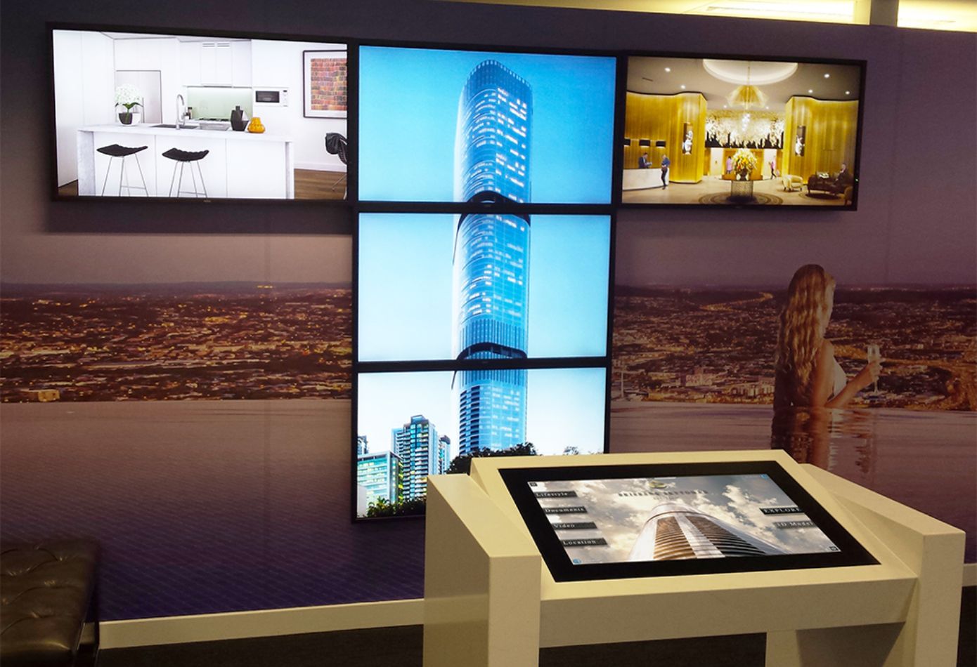 Brisbane Skytower is Brisbane Tallest Residential Tower with breath-taking views of Brisbane and beyond. Q1 Design was commissioned to create an interactive experience for assisting off the plan sales. The sales centre features our drop-in touch screens in a lectern and an interactive video wall showing purchasers where their potential unit is located on the stunning tower. Our digital sales book system is also used on touch screens in agent offices throughout Sydney.
